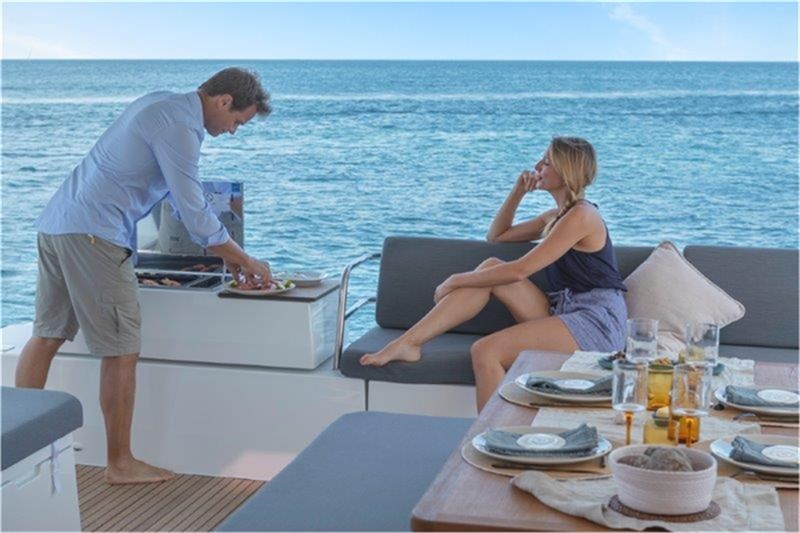 Airco, Linnengoed, Bimini, Buitenspeakers, Bijboot, Elektrisch toilet, Eletric Winches, Flybridge, Generator, Warm water, Inverter, Lazy-Jacks, MP3, Buitenboordmotor, Radio-MP3 Player, Douche, Solar panel, Sprayhood, Handdoeken, Watermaker, Kooktoestel, 12 volt aansluiting, 220 volt aansluiting, Acculader + kabel, Koffiezetapparaat, Dektafel, Buitendouche, Duikbril, Elektrische Bilgepomp, Elektrische Koelkast, Elektrische ankerlier, Ventilator, Zwemvliezen, Keuken Galley, Gangboord, Gas fles, Vuilwatertank, Oven, Radio/ CD speler, Sail repair kit, Boot vergunning, Kabel, Zwemtrap, Gereedschap