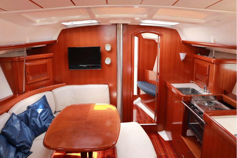 Linnengoed, Bimini, Buitenspeakers, Bijboot, Warm water, Lazy-Jacks, MP3, Solar panel, Sprayhood, Handdoeken, Kooktoestel, 12 volt aansluiting, 220 volt aansluiting, Acculader + kabel, Dektafel, Buitendouche, Duikbril, Elektrische Bilgepomp, Elektrische Koelkast, Elektrische ankerlier, Zwemvliezen, Keuken Galley, Gas fles, Oven, Radio/ CD speler, Sail repair kit, Zwemtrap, Gereedschap